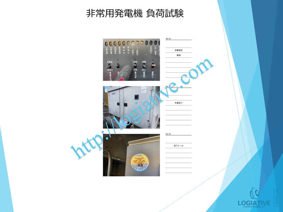 非常用発電機の専門会社 株式会社ロジエイティブは、非常用発電機の点検・整備・修理・メンテナンス・販売を通じて、お客様の安心と安全を支えています。非常用発電機は、電気事業法・建築基準法・消防法という3つの法令によって設置・維持管理が義務付けられており、それぞれに異なる点検項目が定められています。しかし、法令に基づく点検が実施されていても、メンテナンスが適切に行われていなければ、故障や始動不良などのトラブルが発生する可能性があります。 非常用発電機はエンジンを搭載した産業用機械であり、定期的な点検だけでは十分ではありません。特に、防災設備として設置されている非常用発電機は、停電時にエレベーターや消火設備へ電力を供給し、人命を守る“最後の砦”となる重要な役割を担っています。ロジエイティブでは、単なる点検にとどまらず、運転に必要な消耗部品の交換や性能保持を目的とした整備作業を含む独自のメンテナンスプログラムを提供し、万が一の時にも確実に稼働する非常用発電機の運用を強力にサポートいたします