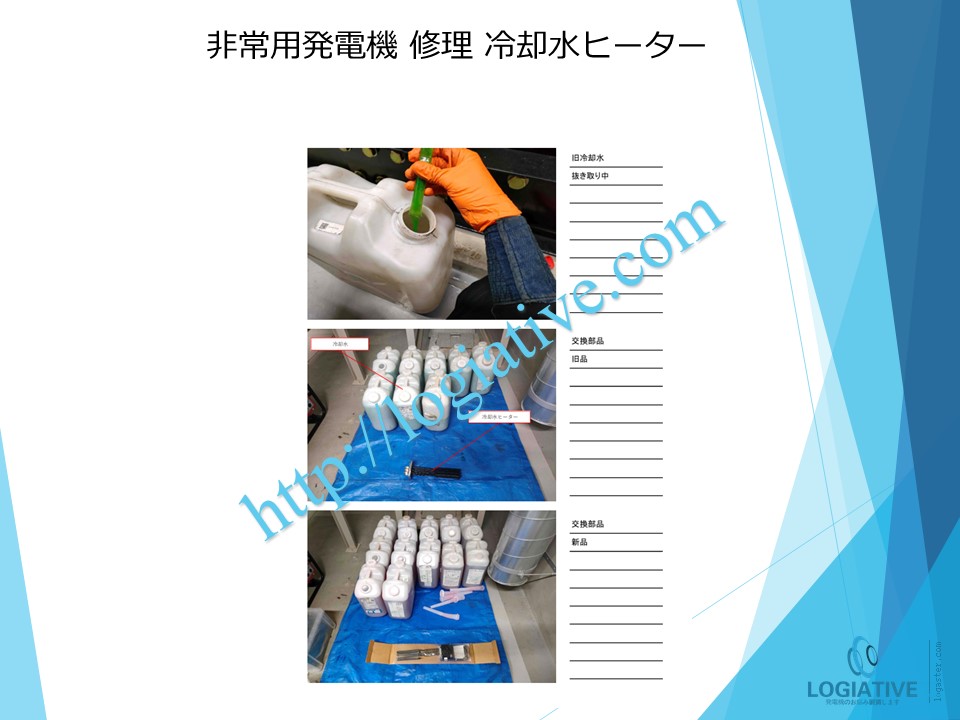 非常用発電機の専門会社 株式会社ロジエイティブは、非常用発電機の点検・整備・修理・メンテナンス・販売を通じて、お客様の安心と安全を支えています。非常用発電機は、電気事業法・建築基準法・消防法という3つの法令によって設置・維持管理が義務付けられており、それぞれに異なる点検項目が定められています。しかし、法令に基づく点検が実施されていても、メンテナンスが適切に行われていなければ、故障や始動不良などのトラブルが発生する可能性があります。 非常用発電機はエンジンを搭載した産業用機械であり、定期的な点検だけでは十分ではありません。特に、防災設備として設置されている非常用発電機は、停電時にエレベーターや消火設備へ電力を供給し、人命を守る“最後の砦”となる重要な役割を担っています。ロジエイティブでは、単なる点検にとどまらず、運転に必要な消耗部品の交換や性能保持を目的とした整備作業を含む独自のメンテナンスプログラムを提供し、万が一の時にも確実に稼働する非常用発電機の運用を強力にサポートいたします